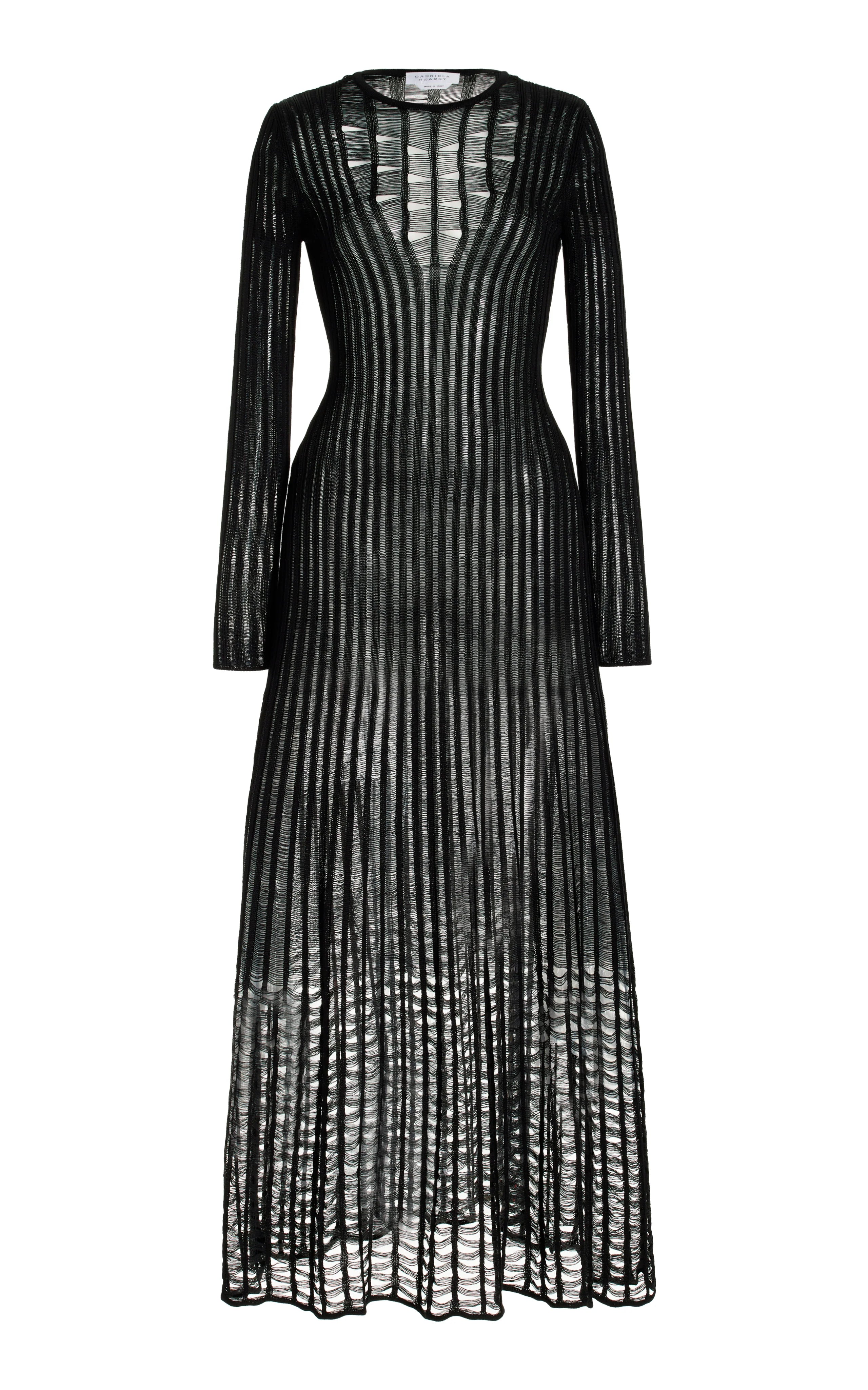 Knit in 100% Silk to give the effect of liquid gold, the Maia Dress is knit in an open mesh stitch that highlights the beauty of the female form. A slip dress is included for lining.