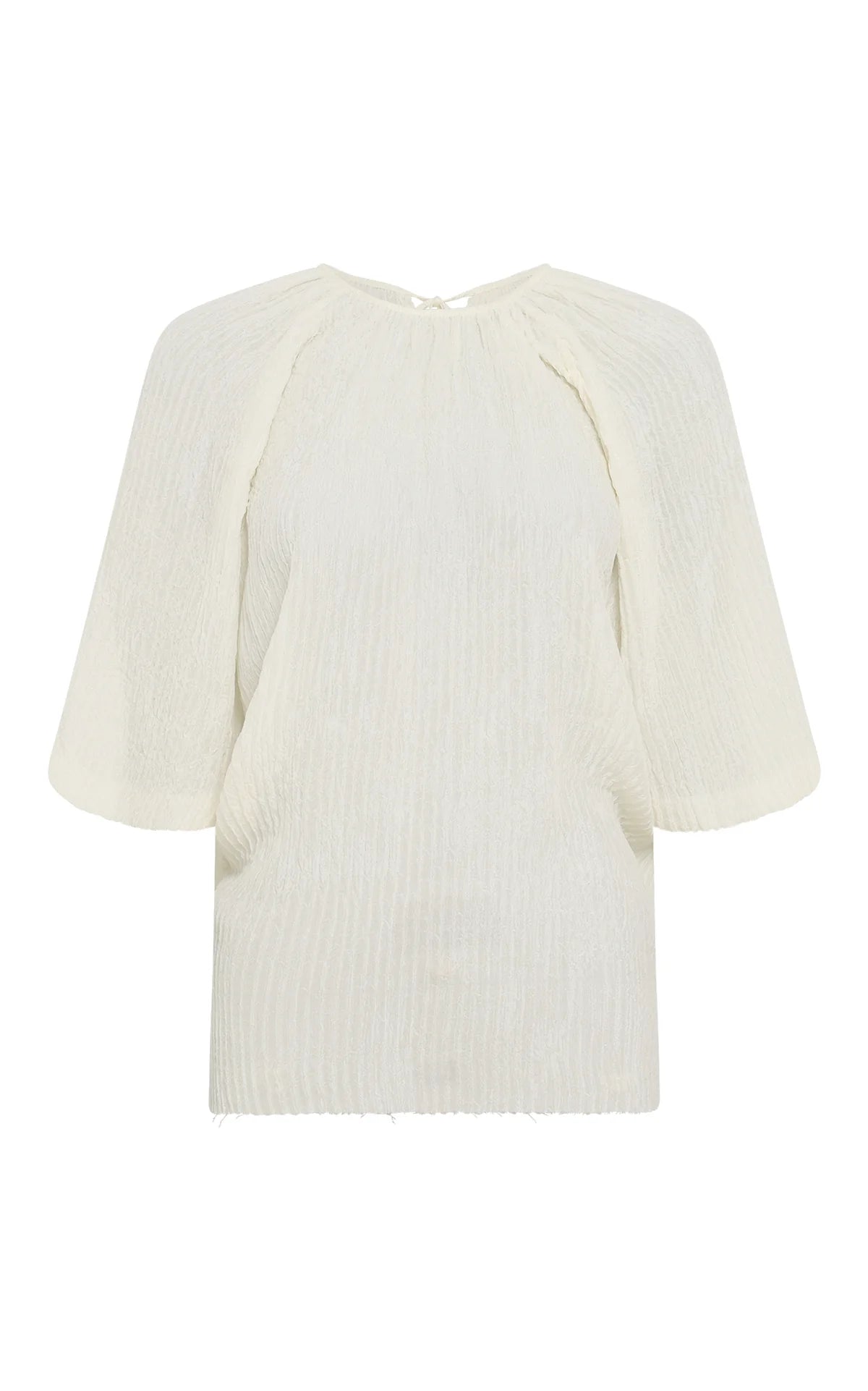 Seamlessly crafted in 100% double plisse silk. The Nula top features mid-arm length sleeves and a tie-fastening at the back of the neck. A slight gather at the neckline creates delicate ease. Pairs beautifully with the Claude pants.