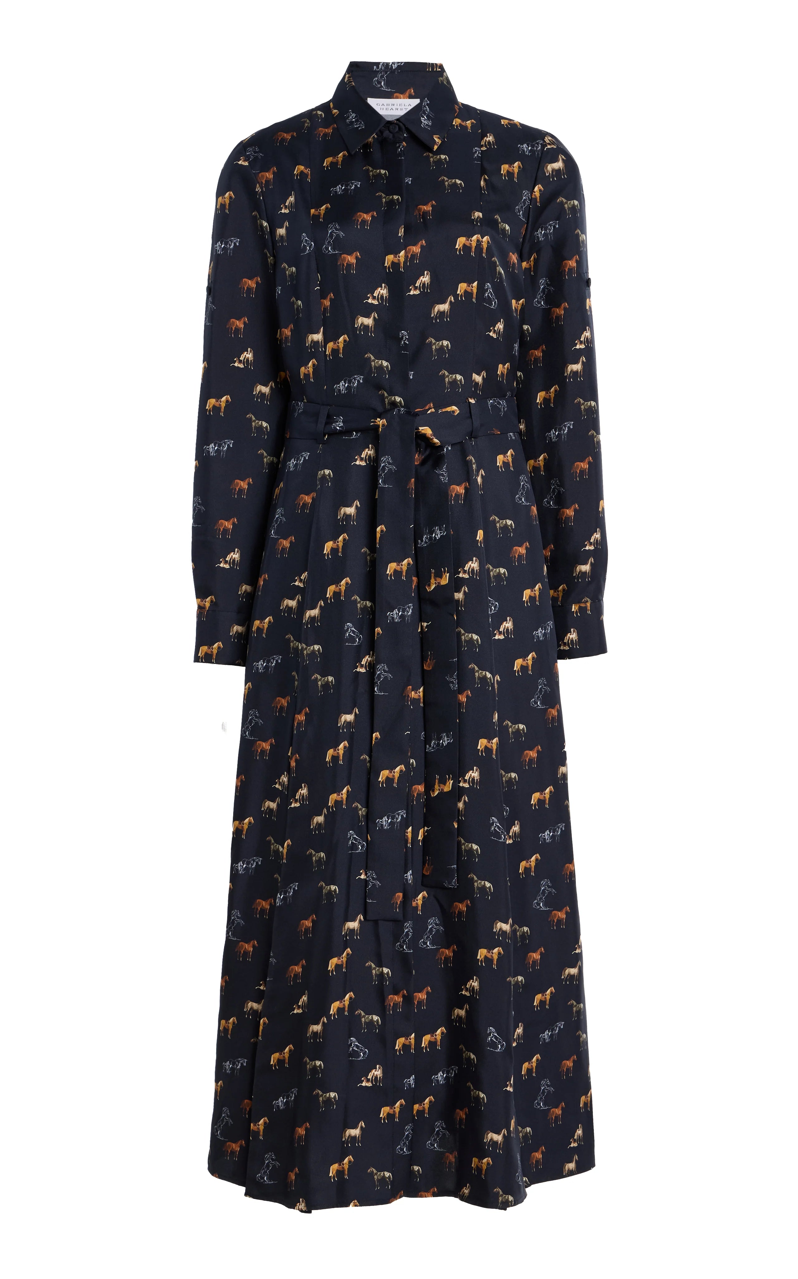 The Gabriela Hearst Galway shirt dress in dark navy multi features a horse print motif and recalls a classic Gabriela Hearst look; With proud collar, centre-front hidden placket and pleats on the skirt, that open up with movement. A set in waistband, flatters the form and finishes this style perfectly. The perfect vehicle for our tie-dye print for the season.
