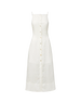 An effortless sundress. Expertly tailored from lightweight, breathable washed linen, the sleeveless George midi dress features delicate spaghetti straps, a high square neckline, and a swingy A-line skirt. Vertical pleats at the bodice define the waist, while a button-down front opens to a slit below the knee. Partially lined for comfort and coverage, it features a hidden side seam zipper for ease. Perfect for everyday wear or warm-weather getaways, just add sandals and shades.