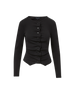 The classic long-sleeve tee—with a feminine twist. Crafted from black stretch cotton, the Jasminah top features a button-front silhouette that’s intentionally ruched to create an accordion-like effect, adding texture and depth. Long sleeves and a split hem complete the design. Perfect for elevating any day look—style with VB denim for off-duty polish or with wide-leg trousers for the office.