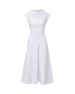 The ultimate spring dress for the minimalist. Crafted from stretch cotton poplin, the white Lisette midi dress balances ease with elegance. It's a modern take on the fit-and-flare silhouette, with cinching side ruching that falls into a softly draped circle skirt. Finished with cap sleeves and artful gathering at the shoulders, it's chic for both weekends and getaways—just add sandals or espadrilles.