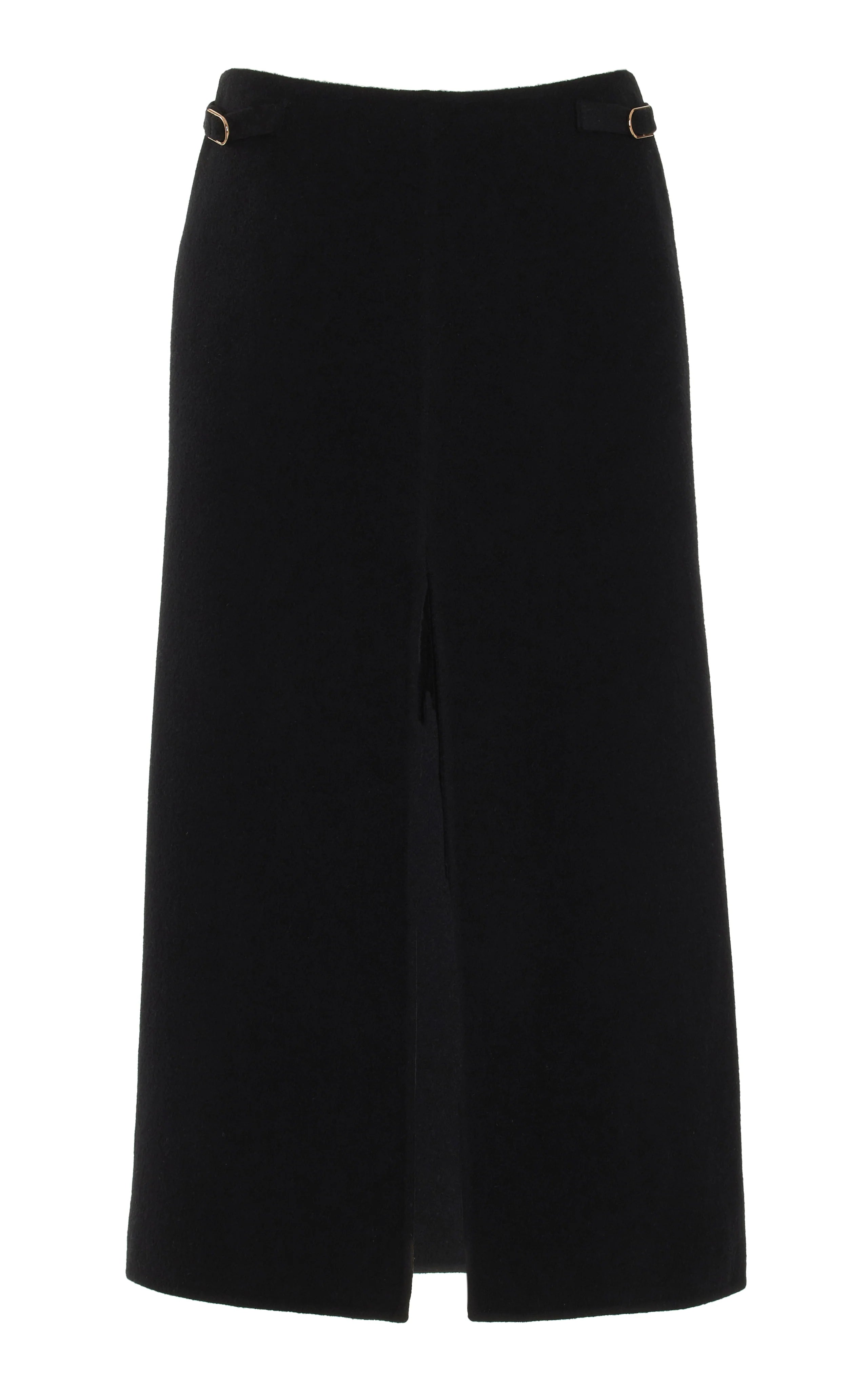 The lean silhouette of the Morelos pencil skirt in recycled cashmere is finished with a front-slit detail and double-face finishing. This clean, flattering style is punctuated with signature GH slider details at each side of the waistline.