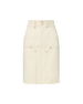 The perfect transitional midi skirt—in crisp ecru denim. The Rian is crafted from 100% cotton in a straight-cut silhouette for structure and versatility. Designed with a flattering high waist, it features front slip pockets and a two-tone flap pocket at the back. Topstitch details in warm brown add subtle contrast and dimension. Pair with a chunky sweater for a chic layered look—or keep it casual with a simple tee.